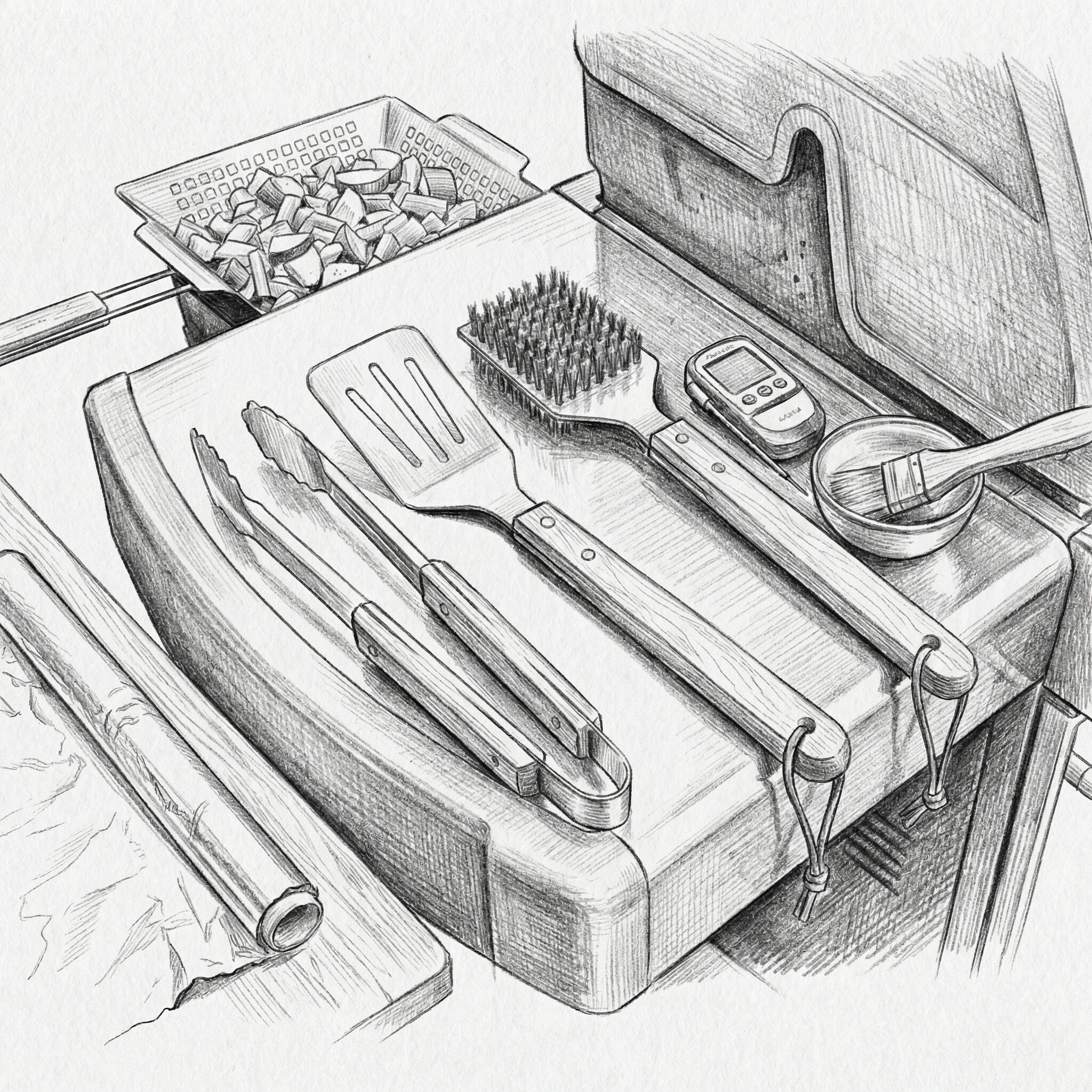 Fortunately, you don’t need a mountain of gadgets to get started. The real value lies in a set of core tools that cover flipping, turning, and cleaning up, as well as those small details that enhance your safety and confidence while cooking over flames and charcoal.